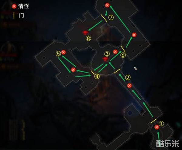 1:首先我们清理小怪,然后门就会自动开启,接着我们在清理怪物,然后门依旧自动打开,然后我们击杀小boss之后进行对话,小BOSS是血红祭司殷娜络丝,然后我们开门,然后在沿着路线清理怪物,清理之后开门,再次清理怪物,开门之后击打大boss之后结束副本;