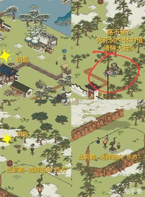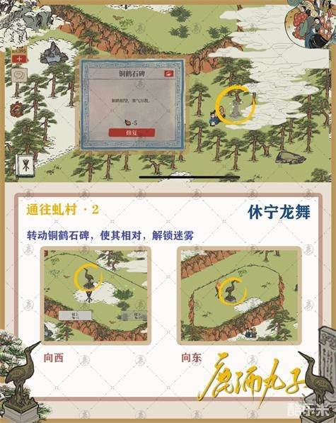4.通往虬村2,要转动铜鹤石碑,解除迷雾。