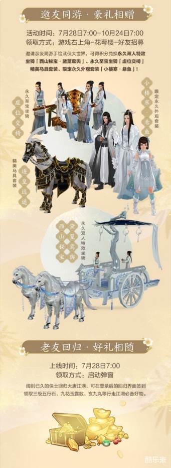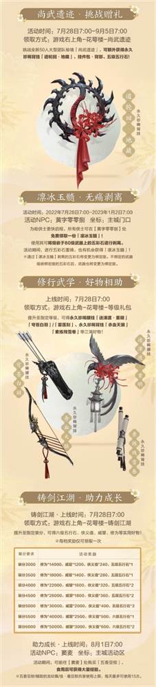 周年活动好礼加码,挑战指定赏金秘境拿周年特效背挂【明月幽昙】,周年集字更送特效称号“老江湖”还可兑换更多游戏实用道具。