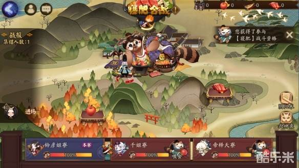 未参与寝肥战斗的阴阳师们,可挑战地图上的四个据点获取食材。