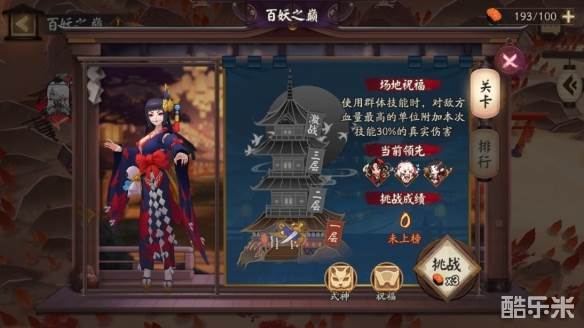 点击庭院枫火叶宴入口后,戳【百妖之巅】即可挑战。