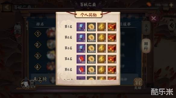 在每个式神的占领地排行榜中,进入个人排名前200名的阴阳师将会获得排名奖励。