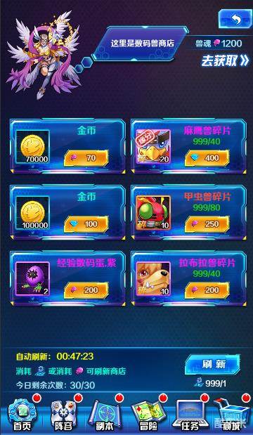 【每日必做5】刷新数码兽商店