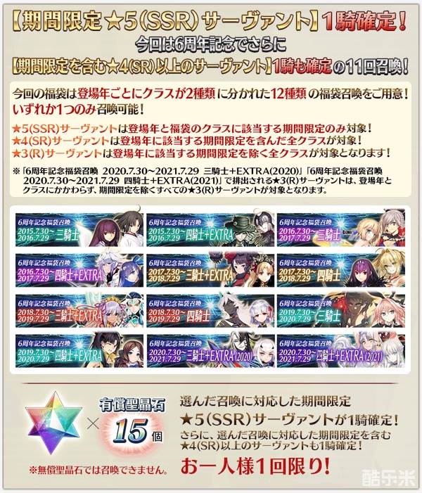 「6周年纪念福袋召唤(登场年份×职阶分类)」卡池限时开启!