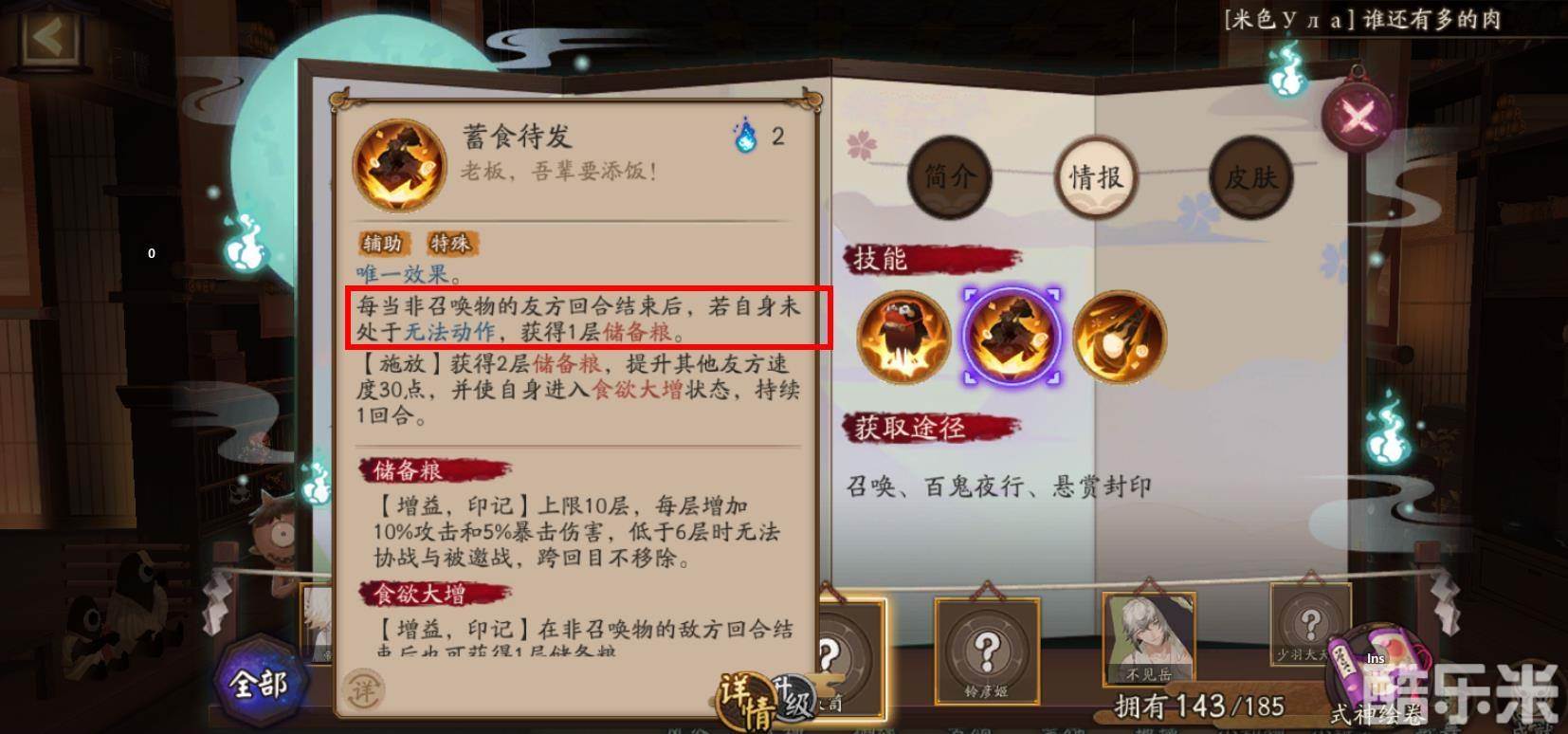 是以两个妖琴师和一个饭笥为主的斗技阵容,因为饭笥在队友回合之后可以储存一层储备粮,十层后不论谁的回合直接对敌方造成大量伤害,而妖琴师的技能可以立即让一个队友获得回合,两个妖琴师互相使对放获得回合积攒储备粮,可以在敌方没有回合的时候消灭对方。