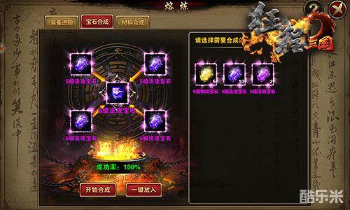 宝石恒久远,一颗永流传,为了宝石的属性,我们要将宝石不断合成更高级。可以使用两颗以上同类型宝石合成为高一级的同类型宝石,两颗合成成功率为50%,三颗合成成功率为75%,四颗合成成功率为100%,对于走在平地上也能摔跤的小编来说当然是四合一比较保险!