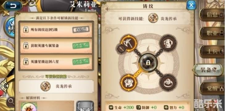 所有铸纹达到5级、获取英雄专属装备、英雄星级达到六星。