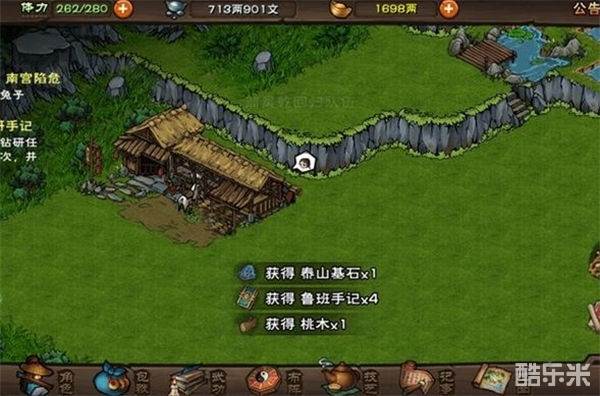 3、作用:泰山基石可以用来制作拴马桩,马桩的具体材料为石块20、松木50、泰山基石1,制作时间为30分钟,需要花费15两银子。在木匠台器具进行制作。