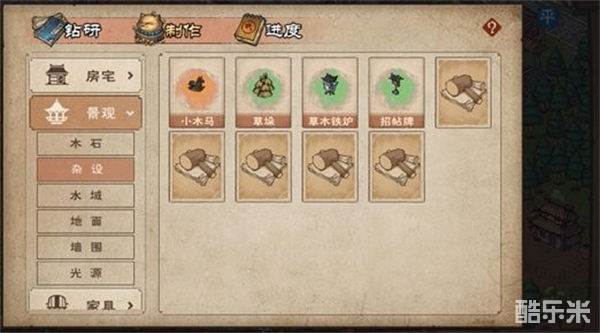 2、其中钻研获得的图纸就可以解锁相应的家具或者是器具,通过制作来获取到这个家具或者是器具了。没解锁之前玩家是无法在制作中看到未解锁的器具。