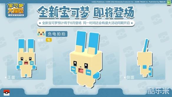 正电拍拍是一只黄色身子上拥有红色晕染的宝可梦,脸颊上还有特别“腮红”,是两个带着黄色“+”号的红色方块,对了,它的尾巴也是“+”号哦!
