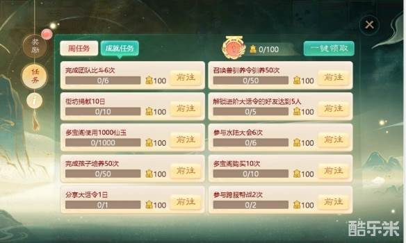 在“大话令”正式上线之后,侠士只要完成游戏中的周常任务和成就任务,即可获得大话令经验值,每100经验值能为“大话令”升一级。