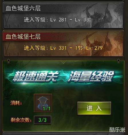 3、进入次数;每人有3次进入次数;VIP玩家可额外购买2次。
