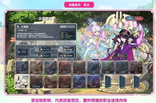 而为了配合分辨率的提高, UI排版与设计也有了相应的优化。小编最喜欢的UI变化当属角色创建。在该页面中,新增了转职树,当玩家点击最终转职按钮后,在预览弹窗中可看到相应职业指定的5个技能及酷炫的特效,方便玩家选择喜欢的职业。额外说一句,最终觉醒的插图太美了,满足了小编的少女心。