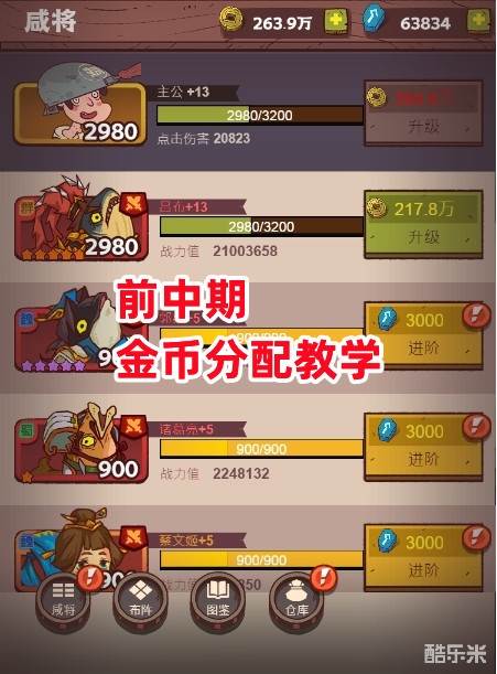 金币,0氪玩家,到了中期就会感觉金币少的可怜,来源与消耗完全不成正比,除非你是高V大佬。所以我们前期只需要把挂件升到900级不进阶,然后只升级主公和吕布,假如进阶石不够了,优先进阶主公然后再是吕布。目前每天挂机、推塔、罐子是玩家金币的主要来源,点金?箱子?推图?少的可怜。