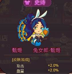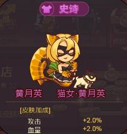 目前皮肤商城里是有五款皮肤,先来讲讲前面两款女咸将的;分别是甄姬的兔女郎和黄月英的猫女,皮肤效果吧大家自己看,实在是一言难尽;再来看看皮肤加成是加了2%攻击和血量,这跟星级到皇冠后白嫖来的机甲皮肤划分了区别,这两个皮肤不建议兑换,当然大佬随意。
