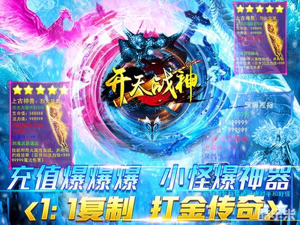最后编辑于3年前开天战神(无限爆充值)是一款以1.85版本为底板,打造的沉默复古打金版本,装备全靠打,不氪金也能称霸全服,超高的装备掉落概率,一身神装就是爽!