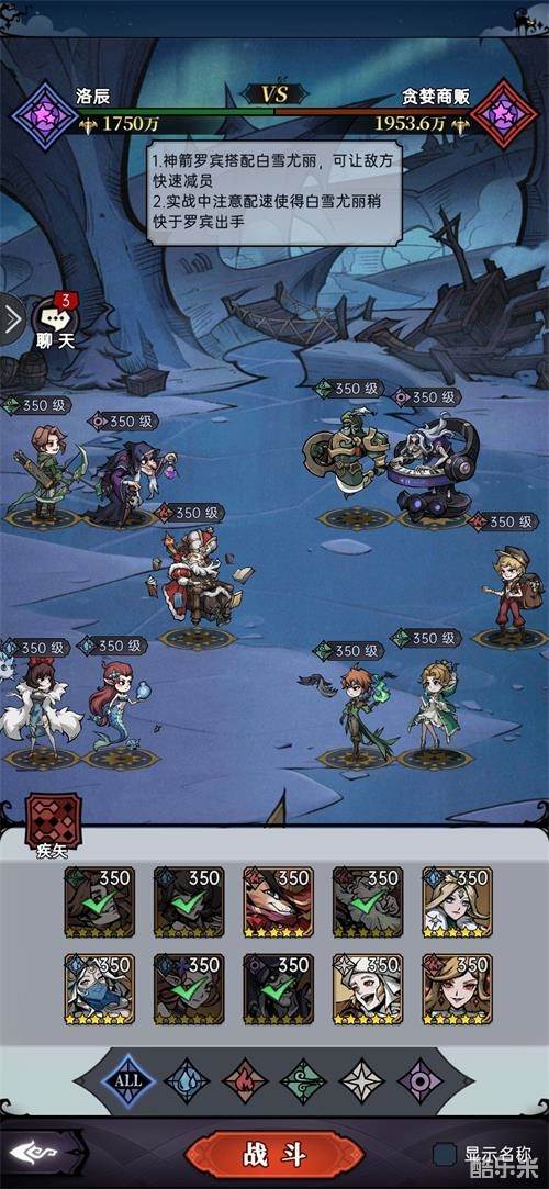 1.魔镜物语狩猎时刻4-1贪婪商贩阵容站位如下,神箭罗宾搭配白雪尤丽,可让敌方快速减员。