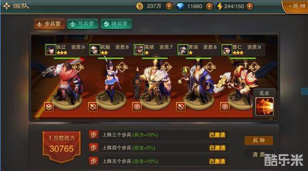 《血染征袍》中,初始进入游戏即可获得第一个武将“高顺”并组建军团-步兵营。根据新手引导,完成剧情关卡推进,引导结束即可获得5名步兵系武将。