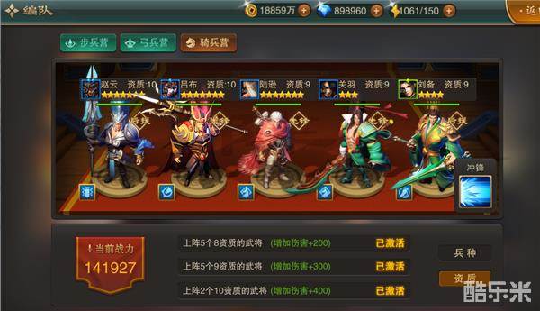 当一个兵种中,上阵的5名武将都是对应的兵种时,能激活阵容特技,阵容特技在国战、官职竞技场中激发,威力不可小觑。除此之外,第二种阵容属性也会随之触发,出战队伍可以获取更强的战斗能力。