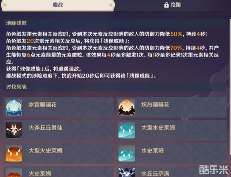 今日buff,雷元素相关反应后,受到影响的敌人防御力降低50%/70%