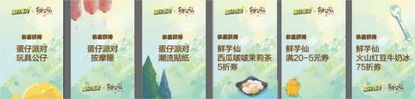有一个“仙”叫鲜芋仙,超灵。主题店购买联动甜品,可在“蛋求甜蜜箱”抽签,获得鲜芋仙官方祝福。签上祝福据说又甜又灵,快来试试看。抽签还有蛋仔公仔、按摩捶、蛋仔贴纸、鲜芋仙折扣劵等礼品赠送,100%中奖,先到先得!
