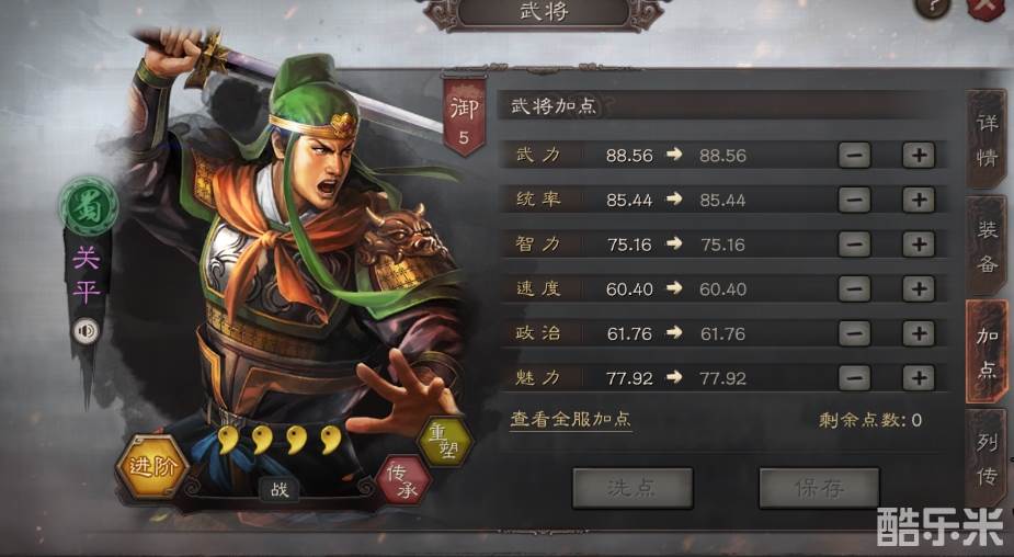 玩家在升级到10的倍数的时候,可以获得属性加点,玩家可以在武将的统率值后面进行加点,可以直接提升武将的统率值。