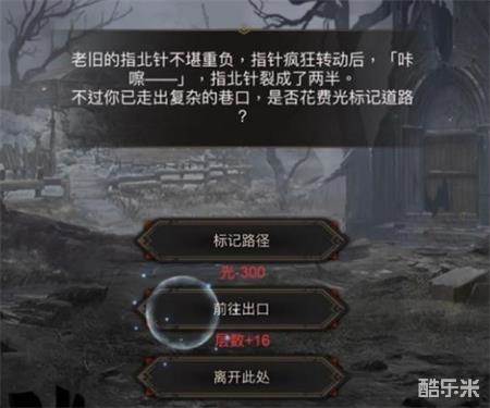 2.1-7层,7层的时候全身刚好4金币,我们购买指北针,第10层的时候遇到路口不要使用,选择离开此处。因为如图10层使用指北针的奖励对第一次进入秘境的玩家并不具有吸引力,层数+18层反而会影响我们赚取更多的金币。