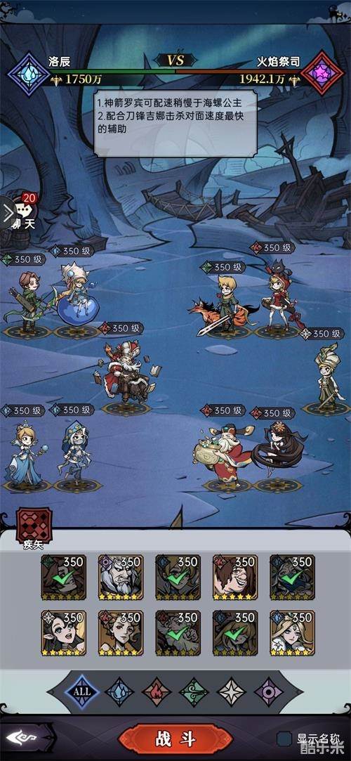 2.魔镜物语狩猎时刻5-2火焰祭司阵容站位如下,神箭罗宾可以配速稍微慢于海螺公主,配合刀锋吉娜击杀对面速度最快的辅助。