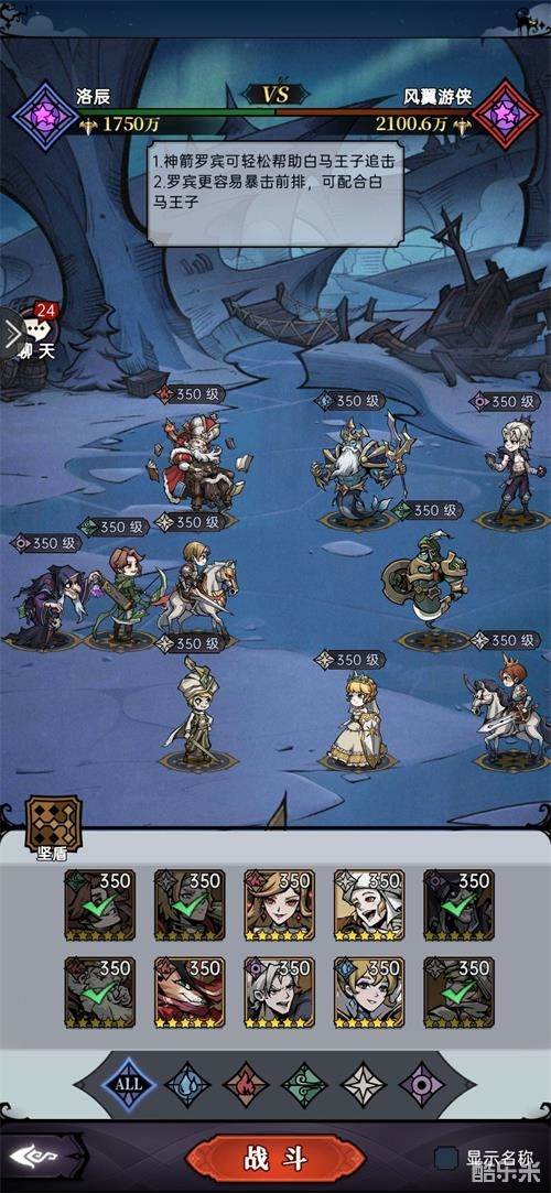 3.魔镜物语狩猎时刻5-3风翼游侠阵容站位如下,神箭罗宾可以轻松帮助白马王子追击。