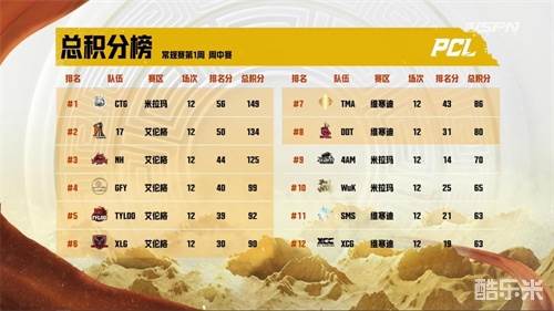 经过一段时间的休赛和调整,各支战队以全新的面貌集体亮相夏季赛的舞台。熟悉的积分制、熟悉的战场,每支战队都拿出十足的实力来夺取每一分。首周周中赛,CTG战队一鼓作气,连续三天蝉联周中赛榜单,队内LuckyWss选手不愧为队内突击手,强有力的得分能力帮助队伍以149分拿到首个晋级周决赛的名额;17战队的SuJiu选手和shou选手作为队内核心淘汰王,让队伍以134分排在榜单第二位;春季赛冠军队伍NH战队也不甘示弱,以125分排在第三位。此外,艾伦格赛区的TYLOO战队、GFY战队和XLG战队也悉数晋级。