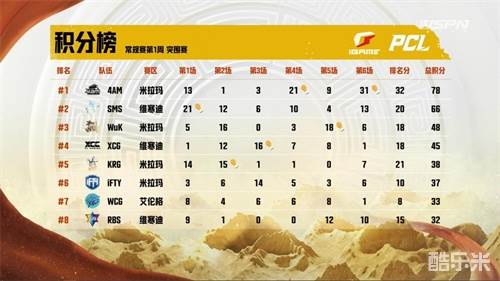 在周中赛,4AM战队仅差一名即可晋级周决赛,带着这份决心,4AM战队在本周突围赛中重新部署战略,xxxLu选手、Forever选手、lzqq选手表现亮眼,分别拿下16、14、13个淘汰数,帮助队伍以78分在积分榜一骑绝尘,轻松突围;而SMS战队同样不容小觑,队内755选手独挑大梁,当日拿下22个淘汰数,拿到突围赛战神榜第一名!WuK战队表现平稳,以微弱优势排在第三;此外,IFTY战队LongSkr以17个淘汰,高达53.5%得分贡献率将队伍送入周决赛;Tianba战队和PeRo战队在本周表现平平,无缘晋级周决赛。