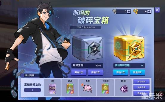 7月28日服务器维护后~8月18日7点,玩家通过“破碎宝箱钥匙”打开破碎宝箱获得各种道具。打开破碎宝箱有概率获得“高级破碎宝箱”,可以使用“高级破碎宝箱钥匙”打开。每次抽取数会累计,经过下方5个节点可以获得不同礼物。抽取过程中有一定概率获得“破碎商城兑换券”,可以用于兑换商品。