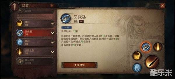 回旋盾:拉怪技能,向前扔出一面盾牌,对沿途的敌人造成伤害,价格沿途的敌人拉到自己身前,在单人刷本推图的时候是很好用的技能之一。