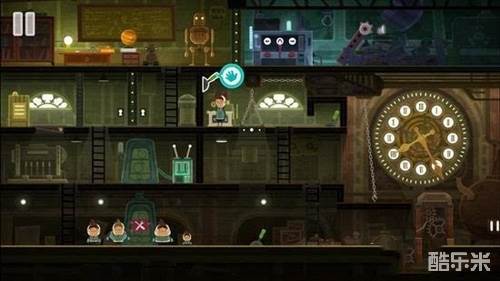 7切换为“壮硕的我”,打破拦路的箱子。继续向右走,可以取出卡在齿轮中的树枝,让钟表动起来。