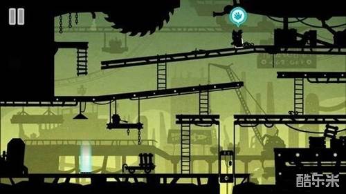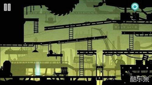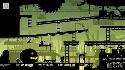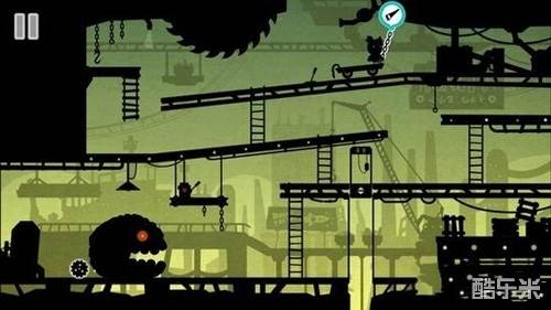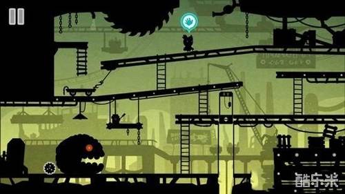 11走过去,上去小车,能抓到铁链,上到中间悬挂的一个有开关的地方。拉动开关,打开一盏灯,照射到怪物,原来是一堆小胶囊怪物组成的,小怪物们被吓跑。取得“齿轮”。