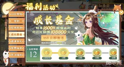 购买68元成长基金,即可立即获得6800元宝。后续升级还能解锁元宝奖励,总计可得10W元宝!超高回报率,助你快速成长!