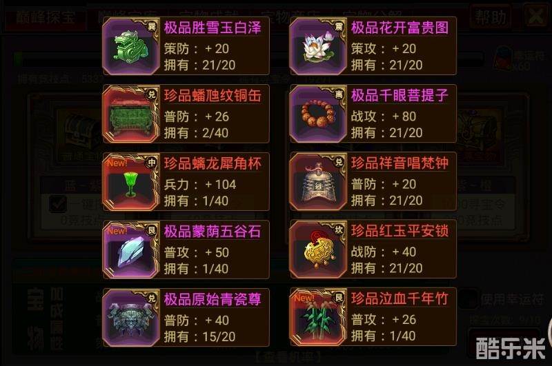 ·宝物商店中,同样可以花费竞技点购买二阶宝物。