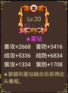 ·满级★御器与星钻头像框融合后可获得★星钻头像框。