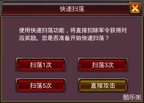 ·征战地图打败敌军,获得五星完胜后,可以选择通过快速扫荡直接获得奖励。