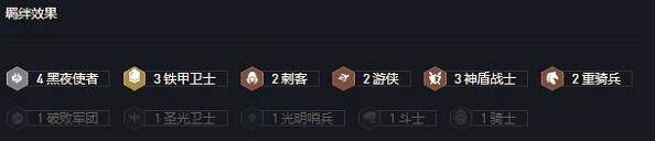 4黑夜使者,3铁甲卫士,2刺客,2游侠,3神盾战士,2重骑兵;