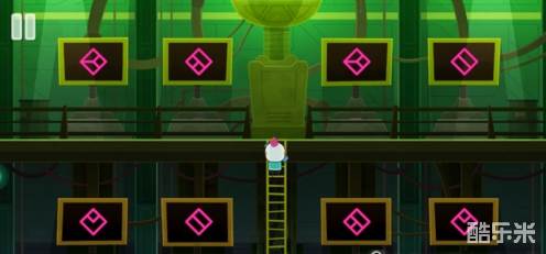 这一关要分别把两只手和头炸了。首先通过摇杆将红色球移到左边,按红色按钮会出现一个炸弹缓慢的向左边走,这时去上梯子,手会砸下来将炸弹砸破,手被震碎。相同道理,将右手炸破。然后将球移到中间扔出最后一个炸弹,通关。