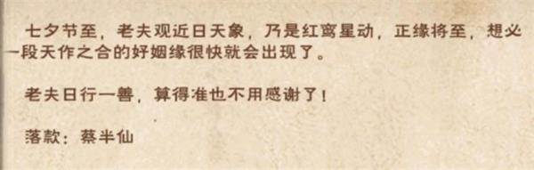 1.第一个就是思君之祈任务,在洛阳处打听思君之祈,就会有一个人送信,收到邮件7两银子和一封信。这封信是随机的,谁都有可能送给你,比如水莲仙,阿紫等,不同人,信件内容也不一样。
