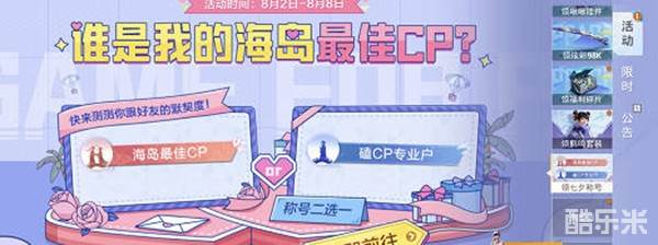 3:然后我们可以在海岛最佳cp还有磕cp专业户中任意选择一个;