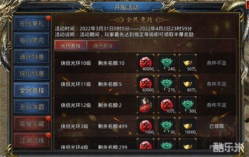 提升等级,率先到达指定等级可领取丰厚奖励(限量)