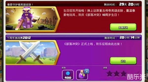 4、第一关的十周年挑战赛主题为十周年挑战赛2012,将带领玩家回顾部落冲突十年前也即2012的经典内容,难度真的是非常低的,很容易就可以过关了。