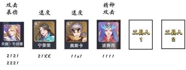 上图为目前SP千仞雪在长图打伤害副本中的主流队伍配置,其中: