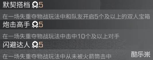 在一场失重夺物战玩法中和队友开启5个及以上的双人宝箱,即可解锁隐藏成就-默契搭档