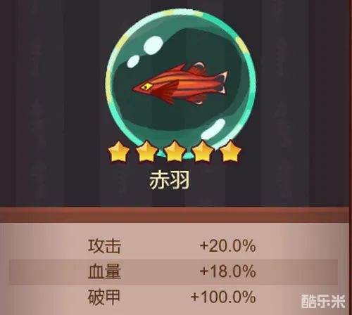 赤羽,是平民玩家必拿的一条鱼,很多新手玩家都想要,适合主C,可以用来PK、打BOSS都是不错的选择,不适合爬塔。红鱼高概率获得方法:1、00:00-4:00期间出现的概率较大.2、采用多次抽取方式,即使你有十个钓鱼竿也不要做一次使用,分三次、四次使用效果更佳.