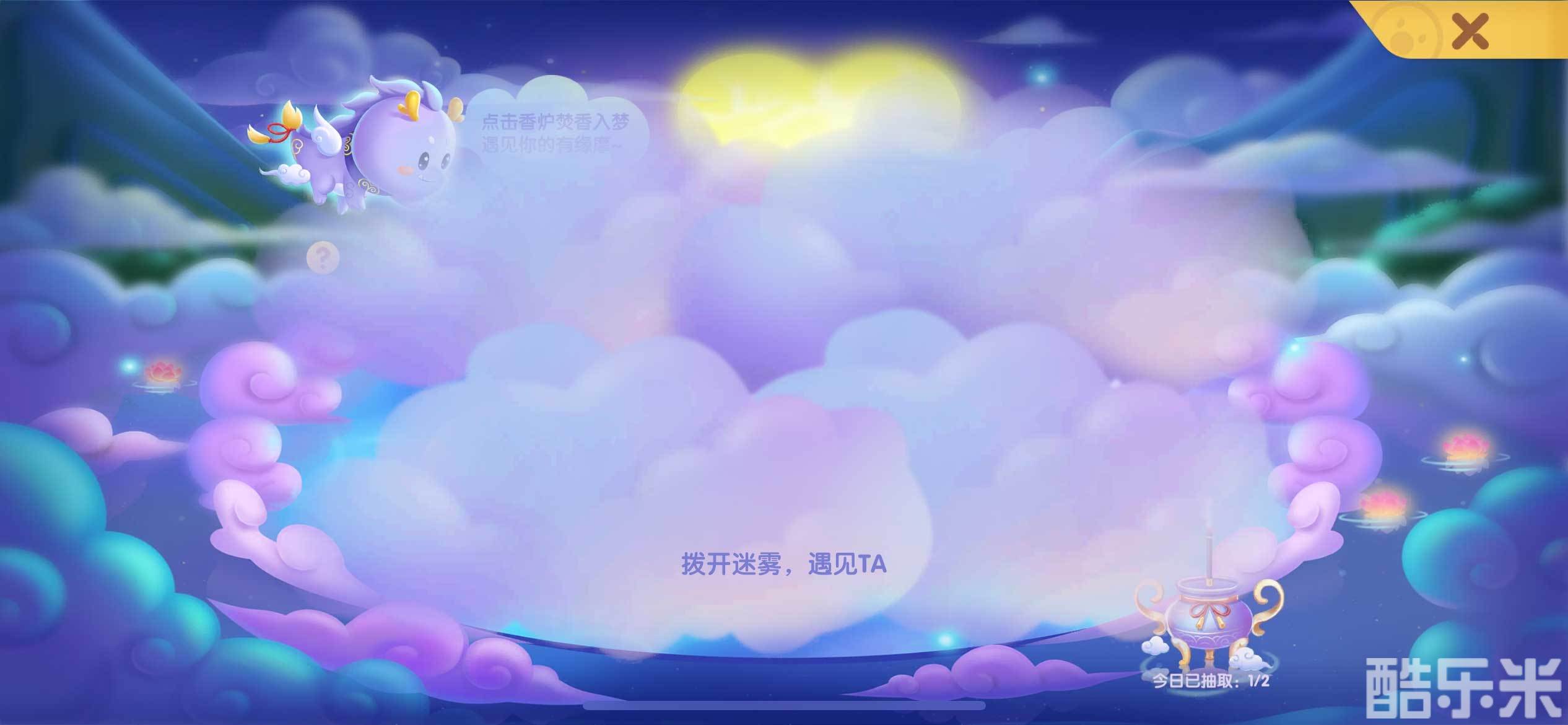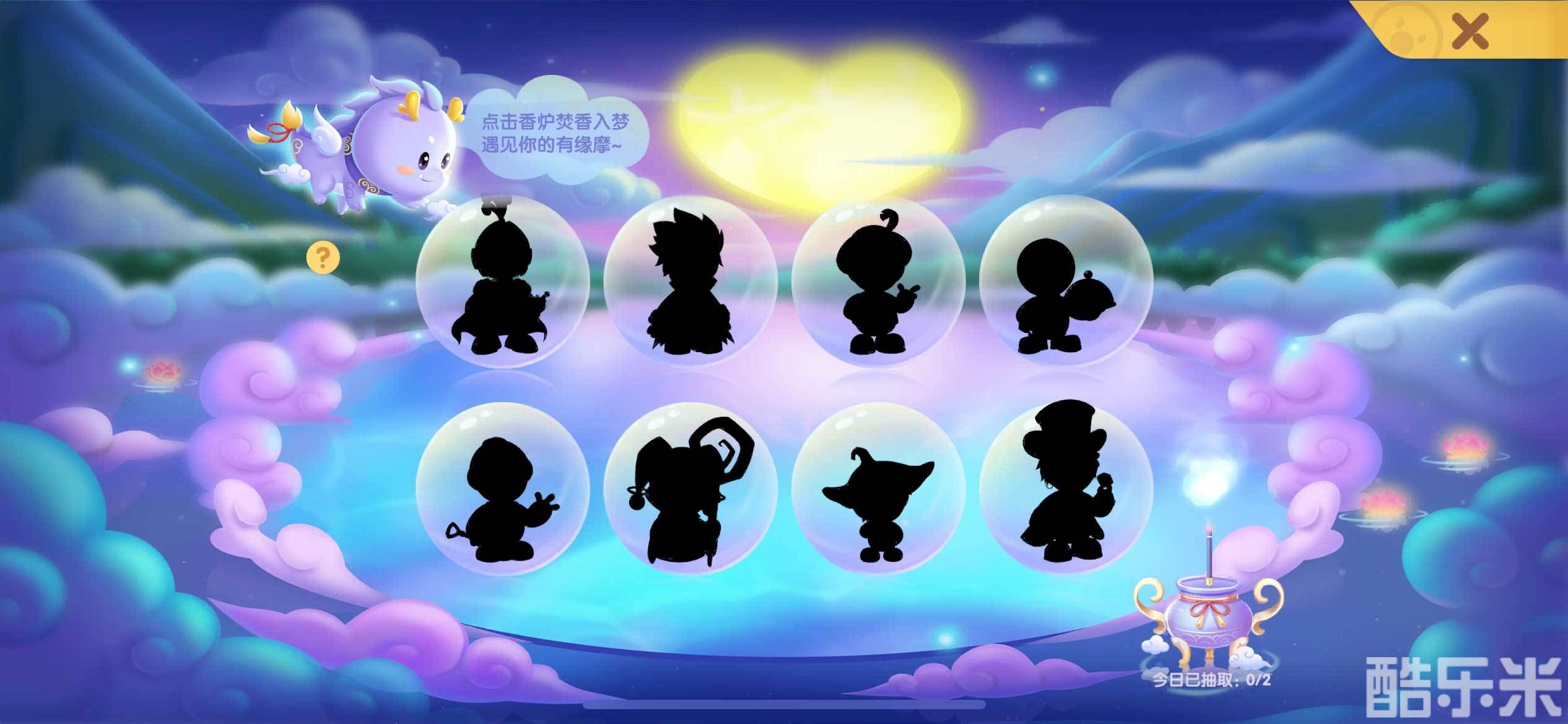 进入活动页后,右下角的香炉处可以看到今日可抽取和已经抽取的梦境次数,点击香炉即可随机抽取一位庄园居民入梦。