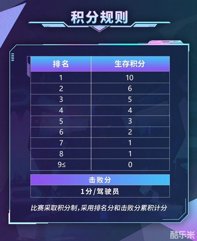本次比赛将采用紧张刺激的胜者为王-单排游戏模式,根据每局比赛的生存排名及淘汰玩家数计算积分并排名。生存排名第一的玩家将获得10生存积分,第二名玩家到第六名玩家将依次获得6~2的生存积分,第七名与第八名各获得1分生存积分,第九名及以下玩家不获得生存积分。除此之外,每击杀一名玩家将获得1分击杀分。
